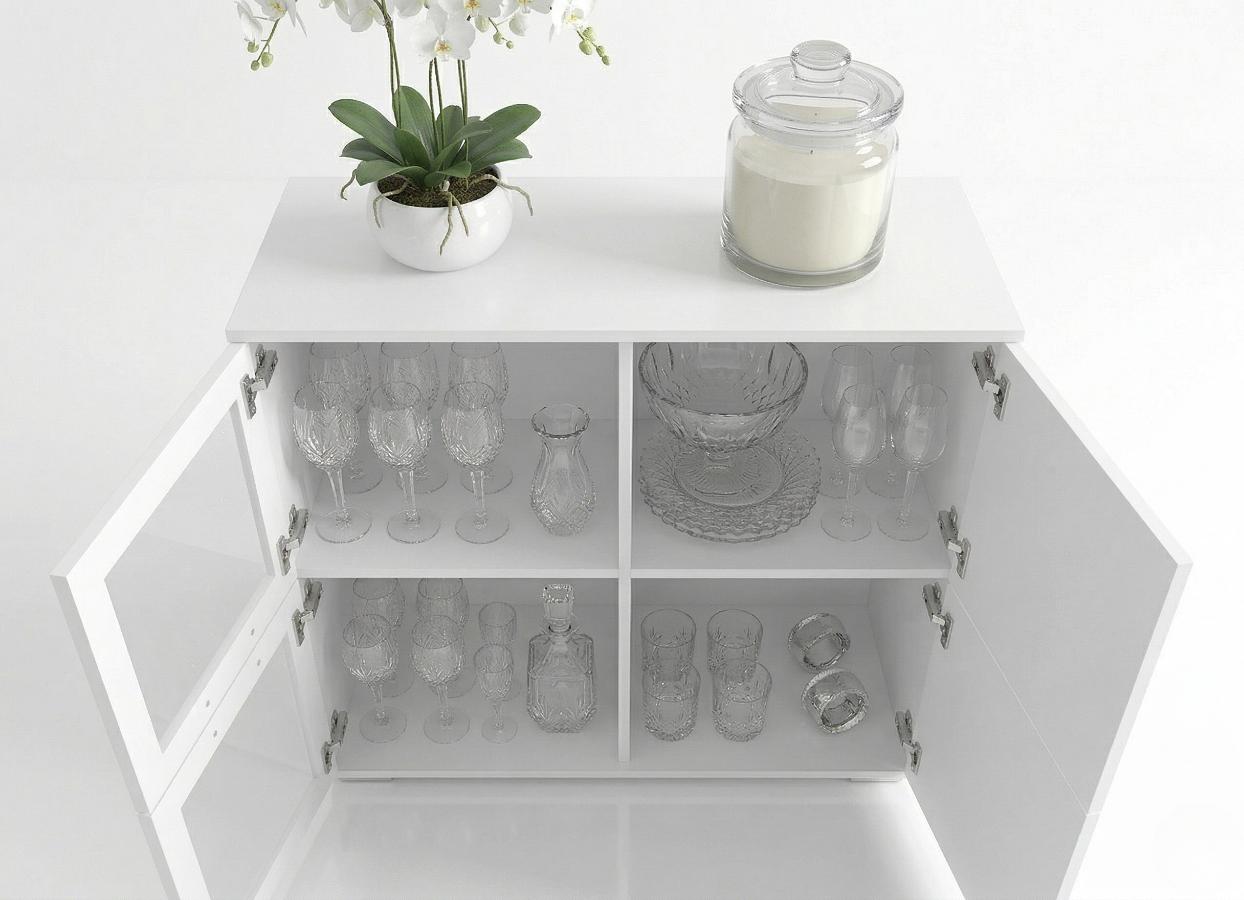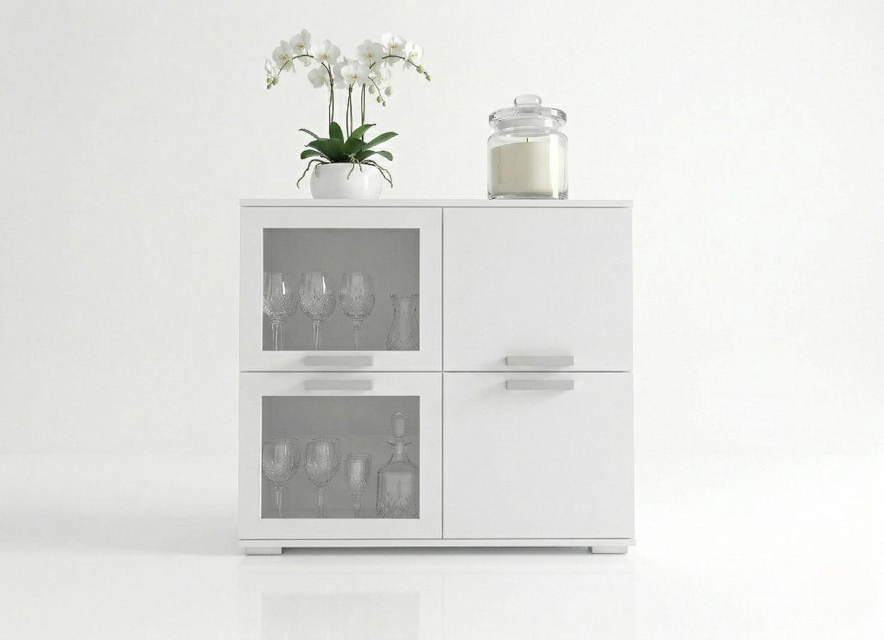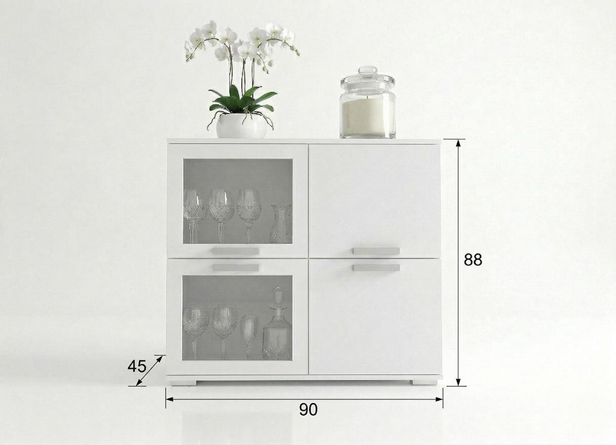 BIAŁA KOMODA 90 CM TREND 2 – WITRYNA 4-DRZWIOWA – KOLORY DO WYBORU
