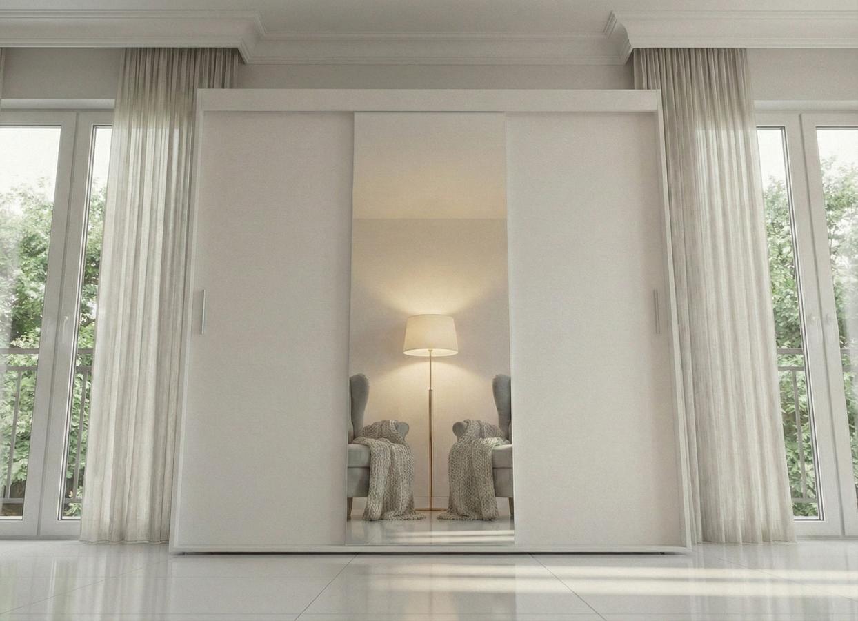 Szafa Biała 2-Drzwiowa 180 cm Milton 2 Garderoba Przesuwna Z Lustrami Ze Szprosami