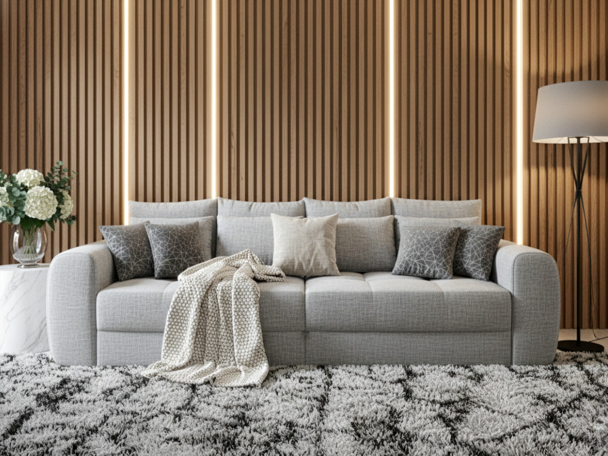 Wolnostojąca – Duża Kanapa 300 cm ATENA – to rozwiązanie, które daje pełną swobodę aranżacji wnętrza. Dzięki temu, że tył mebla jest starannie tapicerowany tą samą tkaniną, co cała sofa, możesz ustawić ją w dowolnym miejscu – nawet na środku salonu. Nie musisz martwić się o estetykę z każdej strony – sofa wygląda elegancko i reprezentacyjnie z każdego ujęcia.