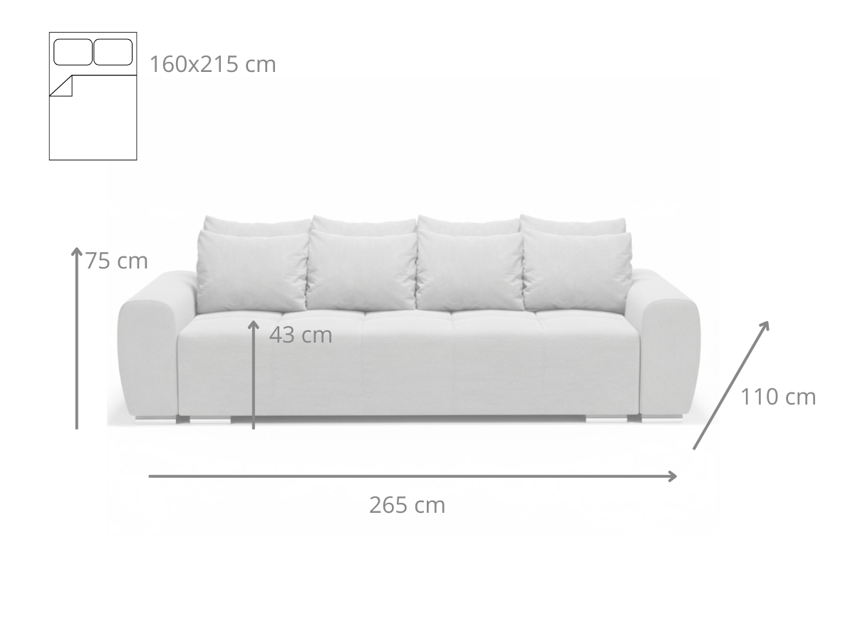 Swoboda Aranżacji – Kanapa Wolnostojąca – Duża Kanapa Rozkładana 265 cm ATENA
