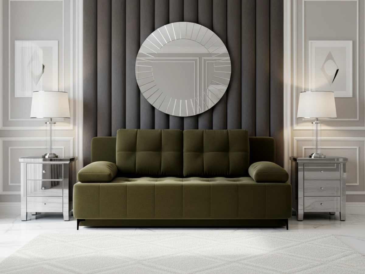 Sofa 3 Osobowa Rozkładana FLORIDA - idealne połączenie funkcjonalności i estetyki. Jej pikowane siedzisko i eleganckie poduszki sprawiają, że prezentuje się wyjątkowo efektownie w każdym wnętrzu - od nowoczesnych aranżacji, przez styl glamour, aż po klasyczne salony. To doskonała propozycja zarówno do mieszkań, jak i przestronnych domów.