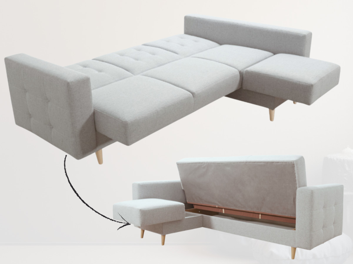 Mały Narożnik Z Funkcją Spania 225×158 CM – 2 Pojemniki – Sprężyny Faliste – IMPERIA