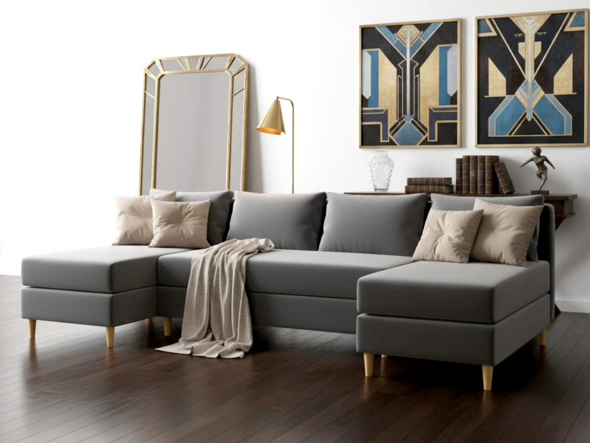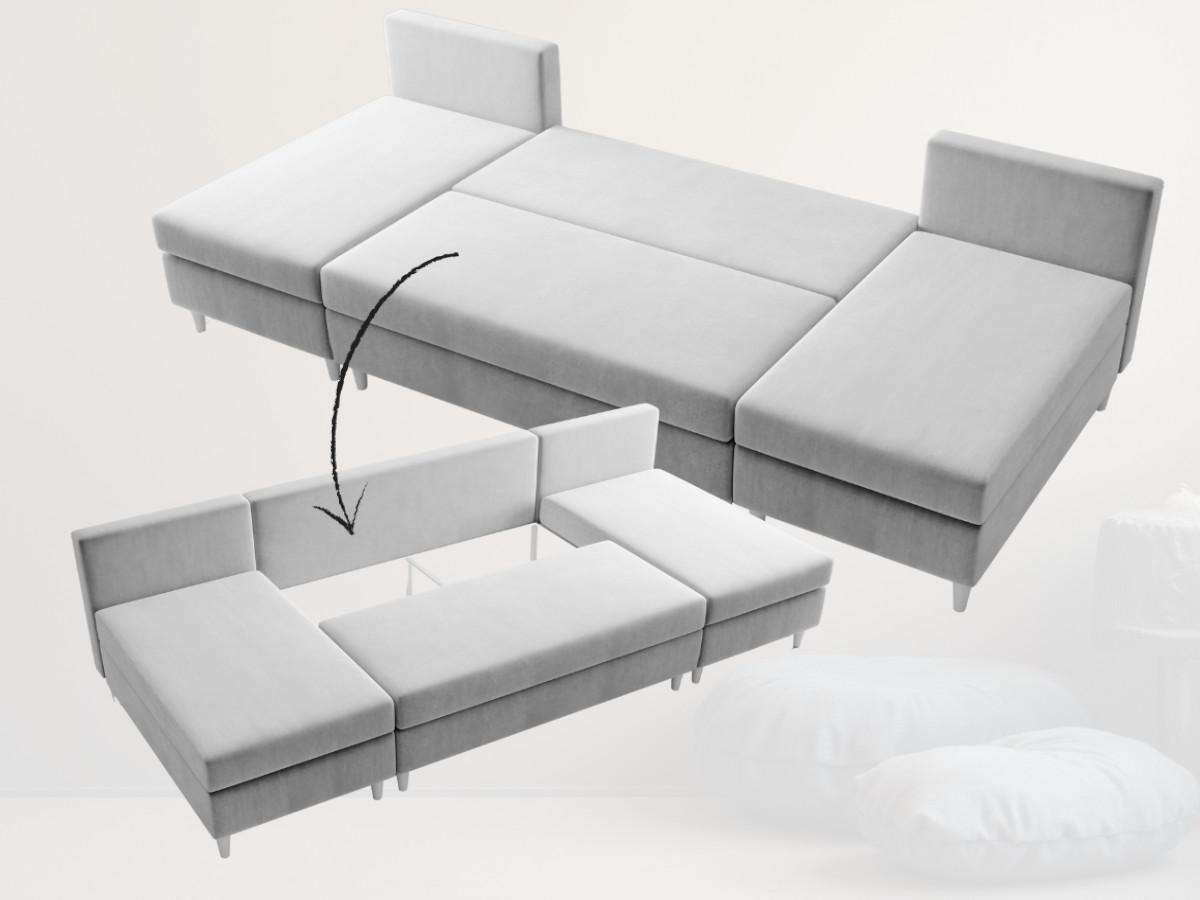 Narożnik Kształt U MESA to praktyczne i wszechstronne rozwiązanie, które łączy estetykę, komfort i funkcjonalność. Jest idealną alternatywą do spania dla gości lub domowników, oferując wygodne miejsce do odpoczynku zarówno w dzień, jak i w nocy. Dzięki swojej kompaktowej konstrukcji, stylowemu wyglądowi i możliwości personalizacji jest nie tylko praktyczny, ale również stanowi elegancki element wystroju każdego wnętrza.