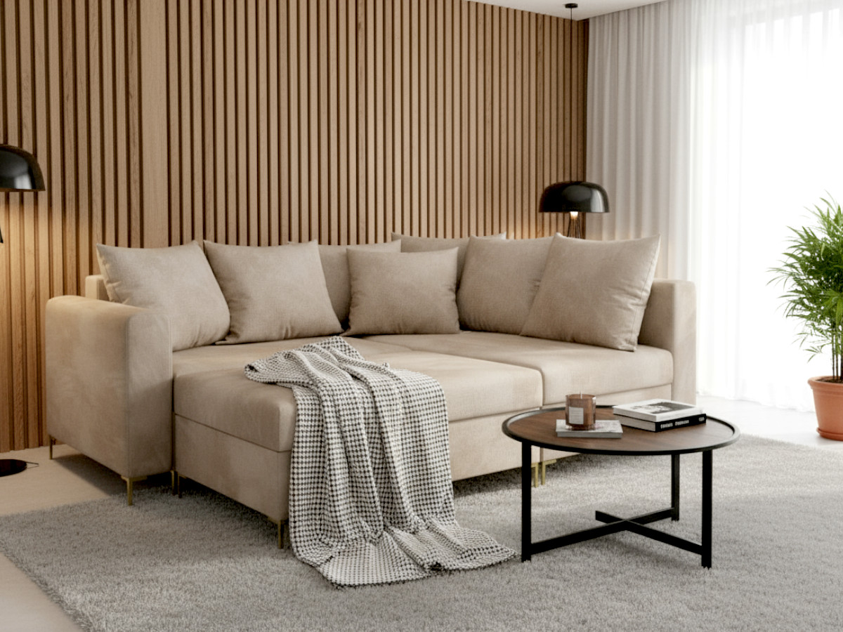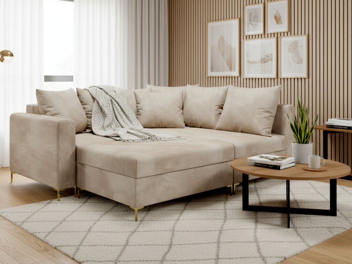 • Łatwe i szybkie rozkładanie – mechanizm działa płynnie, dzięki czemu narożnik można rozłożyć jednym ruchem, bez konieczności używania dużej siły.