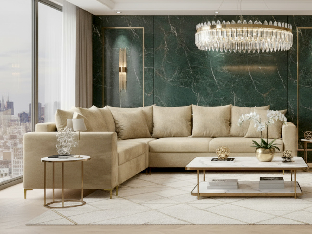 Dzięki personalizacji możesz zdecydować, czy narożnik ma być subtelnym, eleganckim dopełnieniem aranżacji, czy też odważnym akcentem kolorystycznym, który od razu przyciągnie wzrok i nada salonowi charakteru.