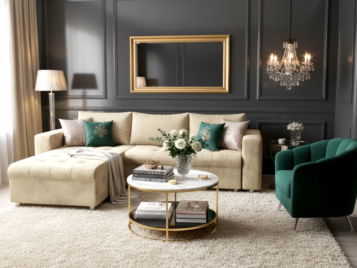 Dzięki personalizacji możesz zdecydować, czy narożnik ma być subtelnym, eleganckim dopełnieniem aranżacji, czy też odważnym akcentem kolorystycznym, który od razu przyciągnie wzrok i nada salonowi charakteru.