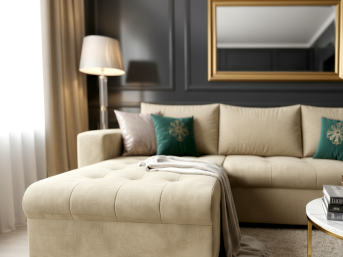 Stonowane barwy – takie jak beż, szarość, czy odcienie kremowe – sprawią, że sofa będzie ponadczasowa i wpisze się w klimat klasycznych, minimalistycznych lub skandynawskich wnętrz.