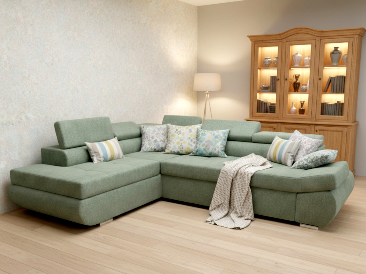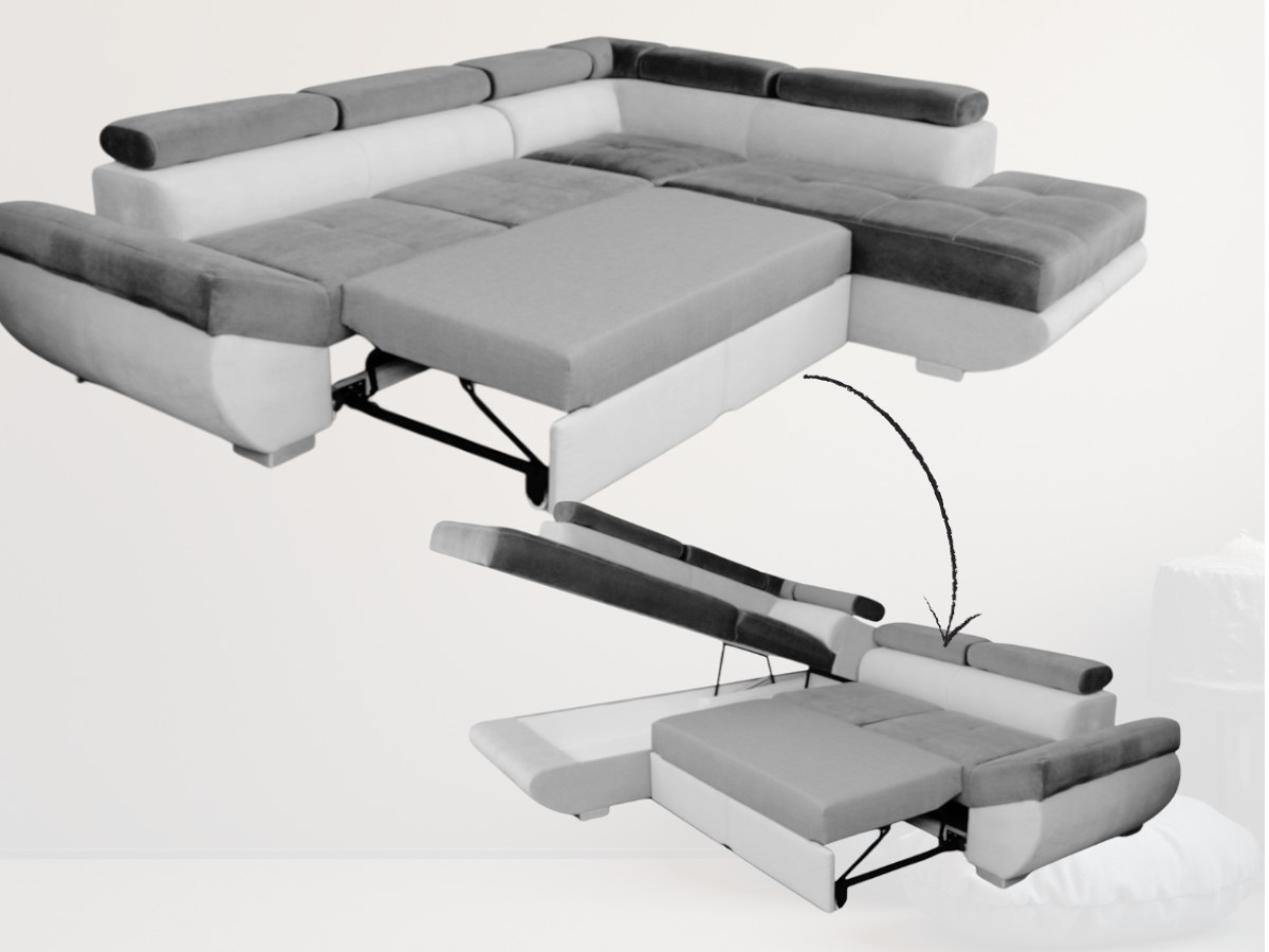 Narożnik Rozkładany 280×200 CM – Regulowane Zagłówki – Funkcja Spania i Pojemnik PRATO