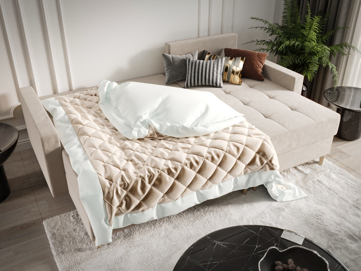 Narożnik Rozkładany Pikowany 224×144 CM + Pojemnik Na Pościel + Sprężyna Bonell Pianka T30 + Wybór Kolorów – AUSTIN