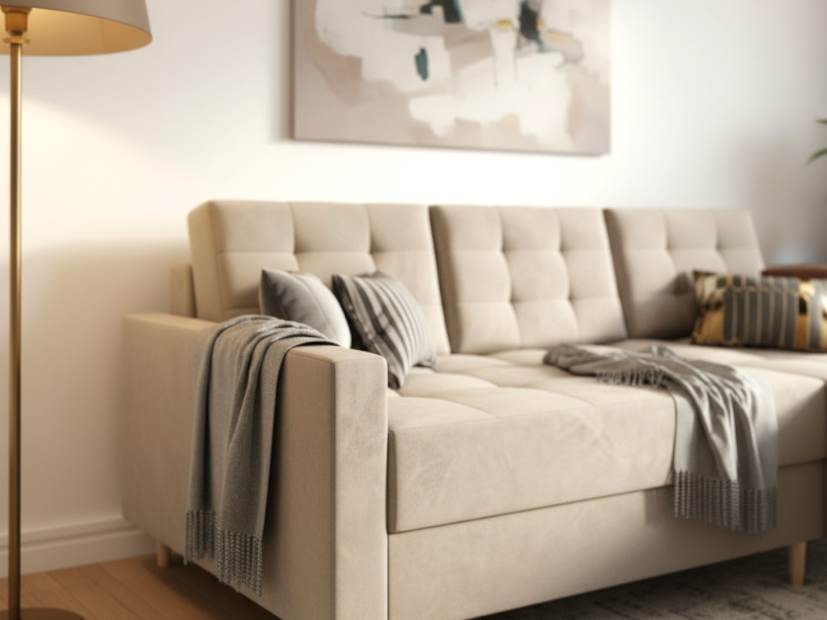 Pikowany Narożnik Rozkładany W Stylu Skandynawskim