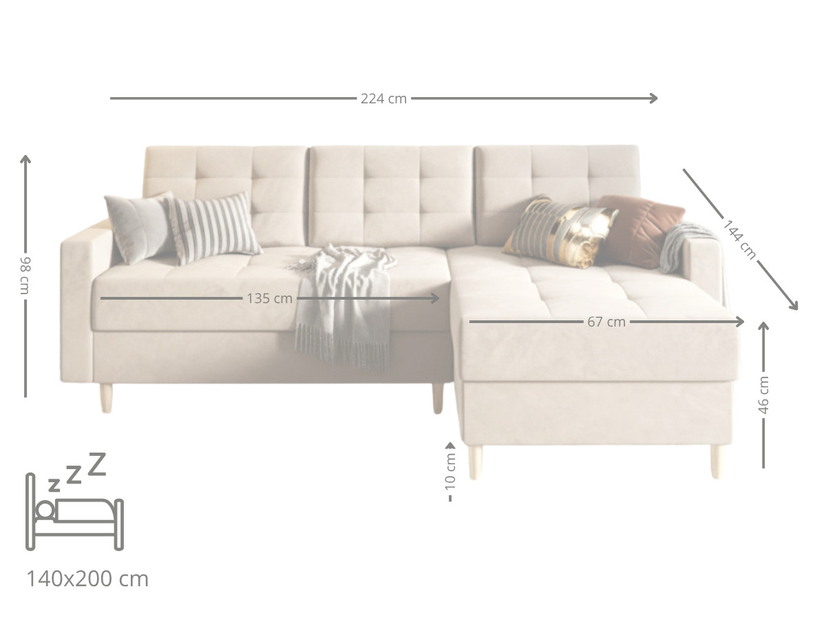 Narożnik Z Funkcją Spania 242×145 CM + Pojemnik Na Pościel + Sprężyna Bonell Pianka T30 + Wybór Kolorów – DAYTON
