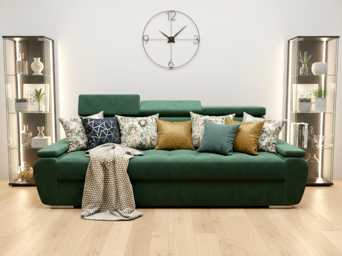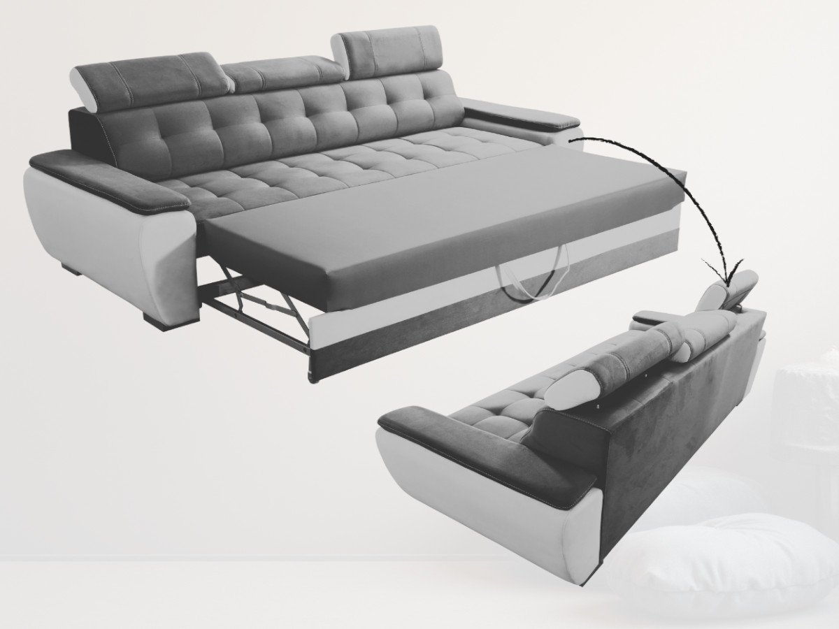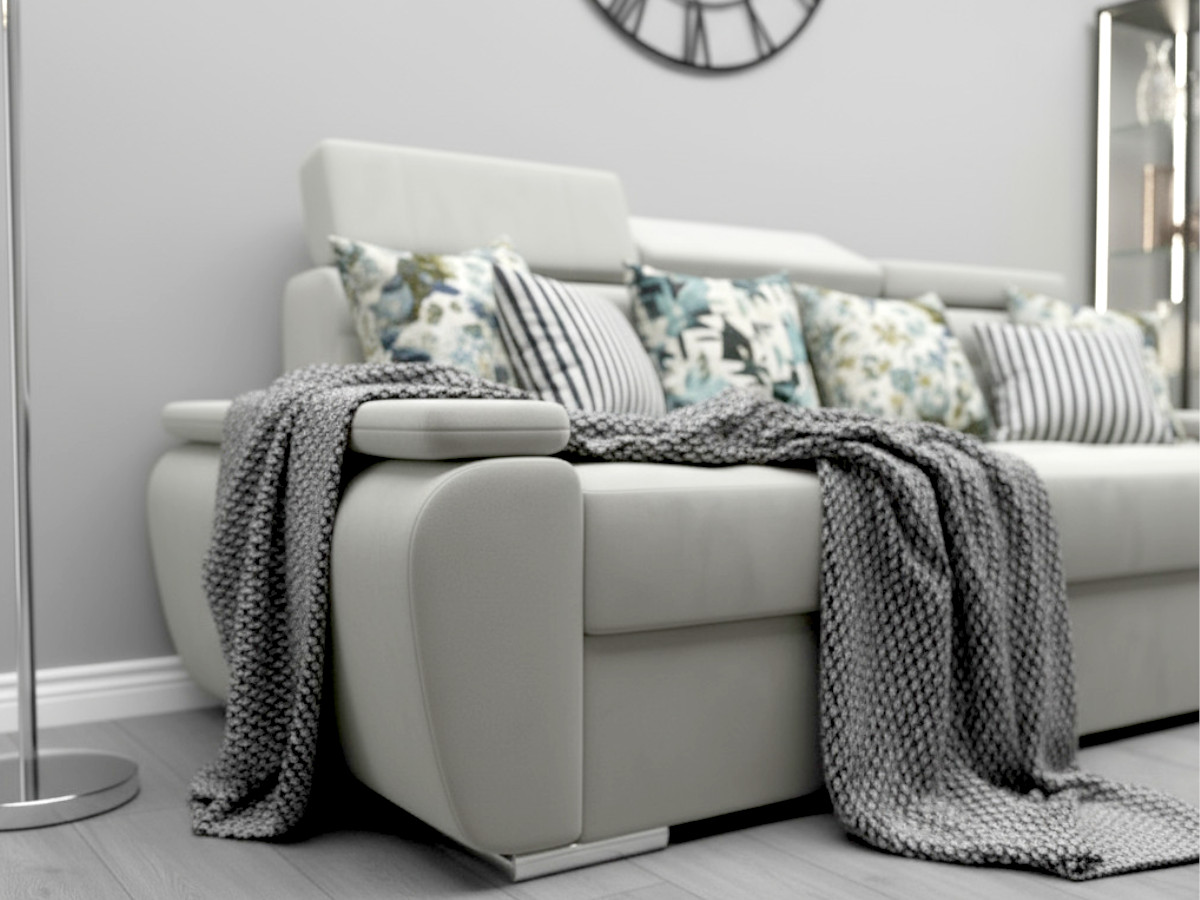 Nowoczesna Sofa Rozkładana ADRIA z regulowanymi zagłówkami oraz pikowanym oparciem i siedziskiem to doskonałe połączenie stylu, komfortu i funkcjonalności. Jej nowoczesny design i starannie dopracowane detale sprawiają, że stanie się ona wyjątkowym elementem wystroju każdego salonu. Jest to mebel, który nie tylko zachwyca wyglądem, ale także oferuje najwyższy poziom wygody, idealny zarówno do codziennego relaksu, jak i spotkań w gronie bliskich.