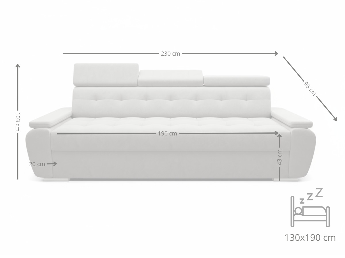 Nowoczesna Sofa Rozkładana 3 Osobowa 230 CM + Regulowane Zagłówki + Sprężyna Falista Pianka Wysokoelastyczna – ADRIA
