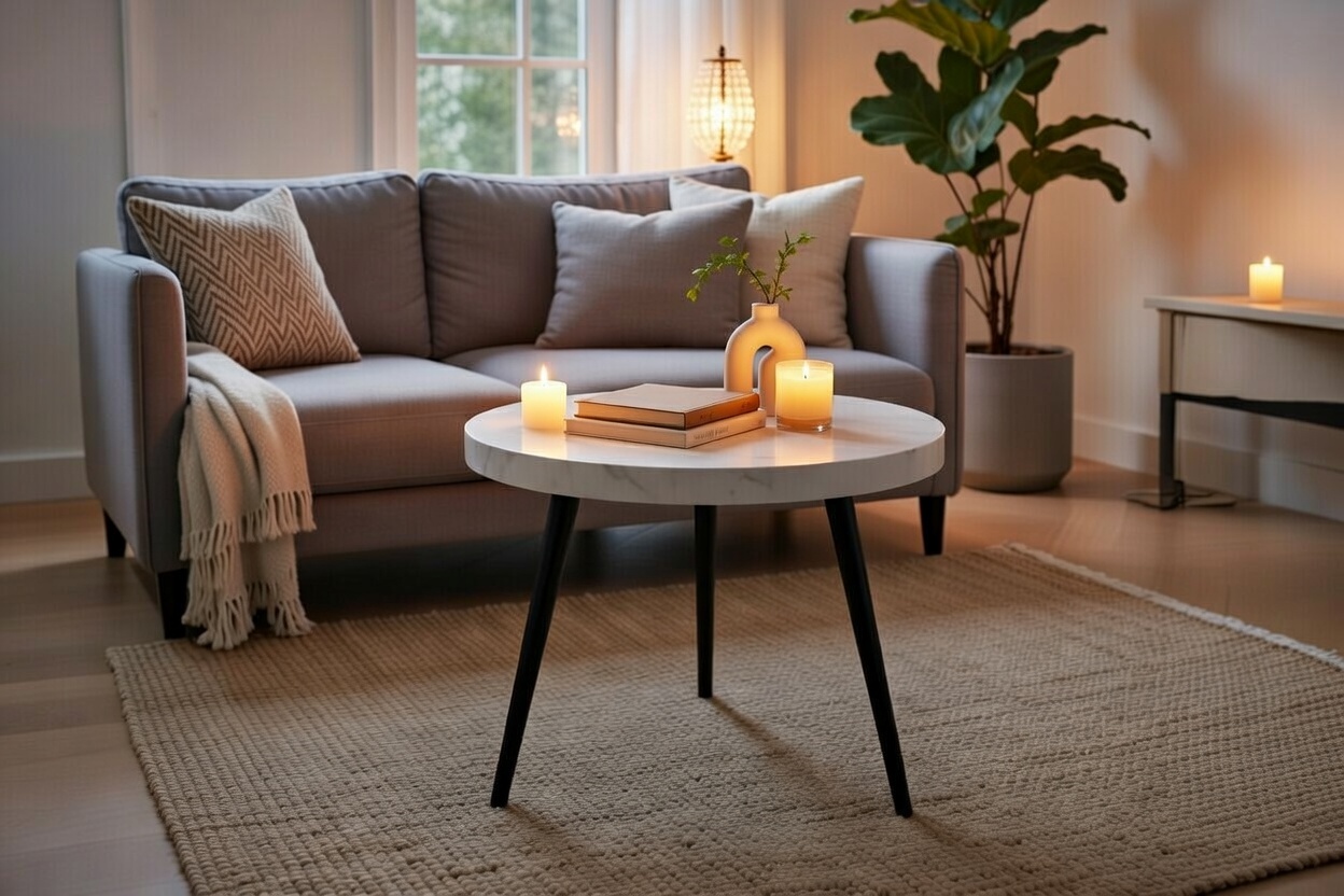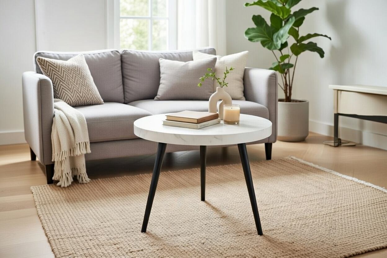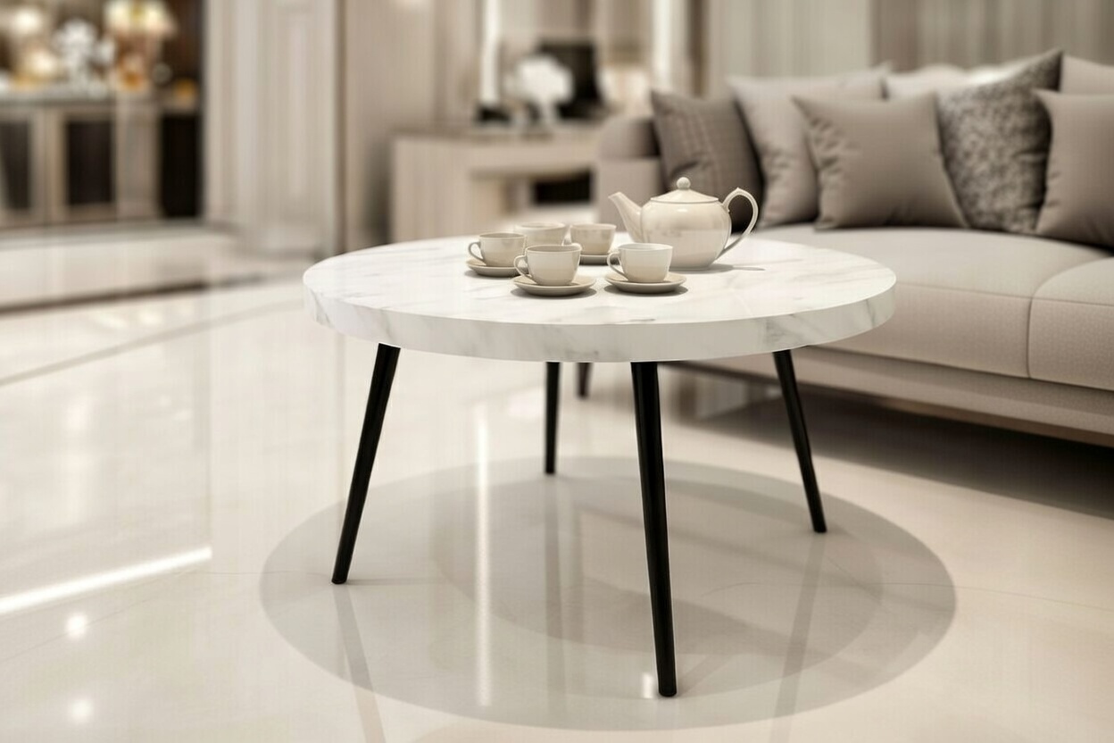 Wyobraź sobie sobotnie popołudnie. Odpoczywasz na kanapie, a obok Ciebie stoi okrągły stolik kawowy 65 cm Detroit. Jego marmurowy blat odbija delikatne światło wpadające przez okno, a czarna podstawa stabilnie trzyma Twoją ulubioną lekturę. Ten mebel to coś więcej niż wyposażenie – to element, który definiuje Twoją przestrzeń jako nowoczesną, uporządkowaną i pełną klasy.
