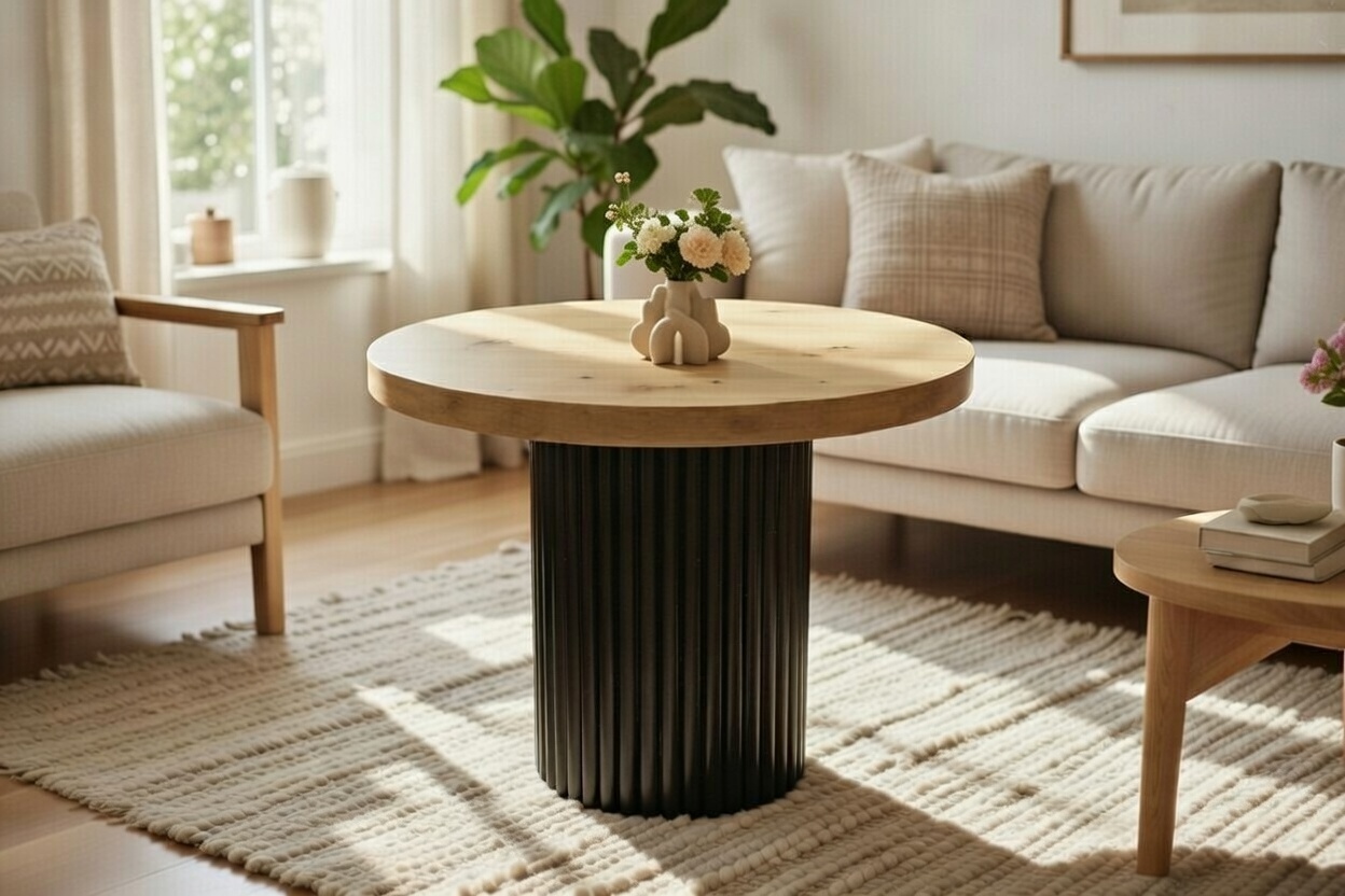 OKRĄGŁY STOLIK LOFT 65 CM UNITY – CIEPŁO NATURY ZAMKNIĘTE W TRWAŁEJ FORMIE