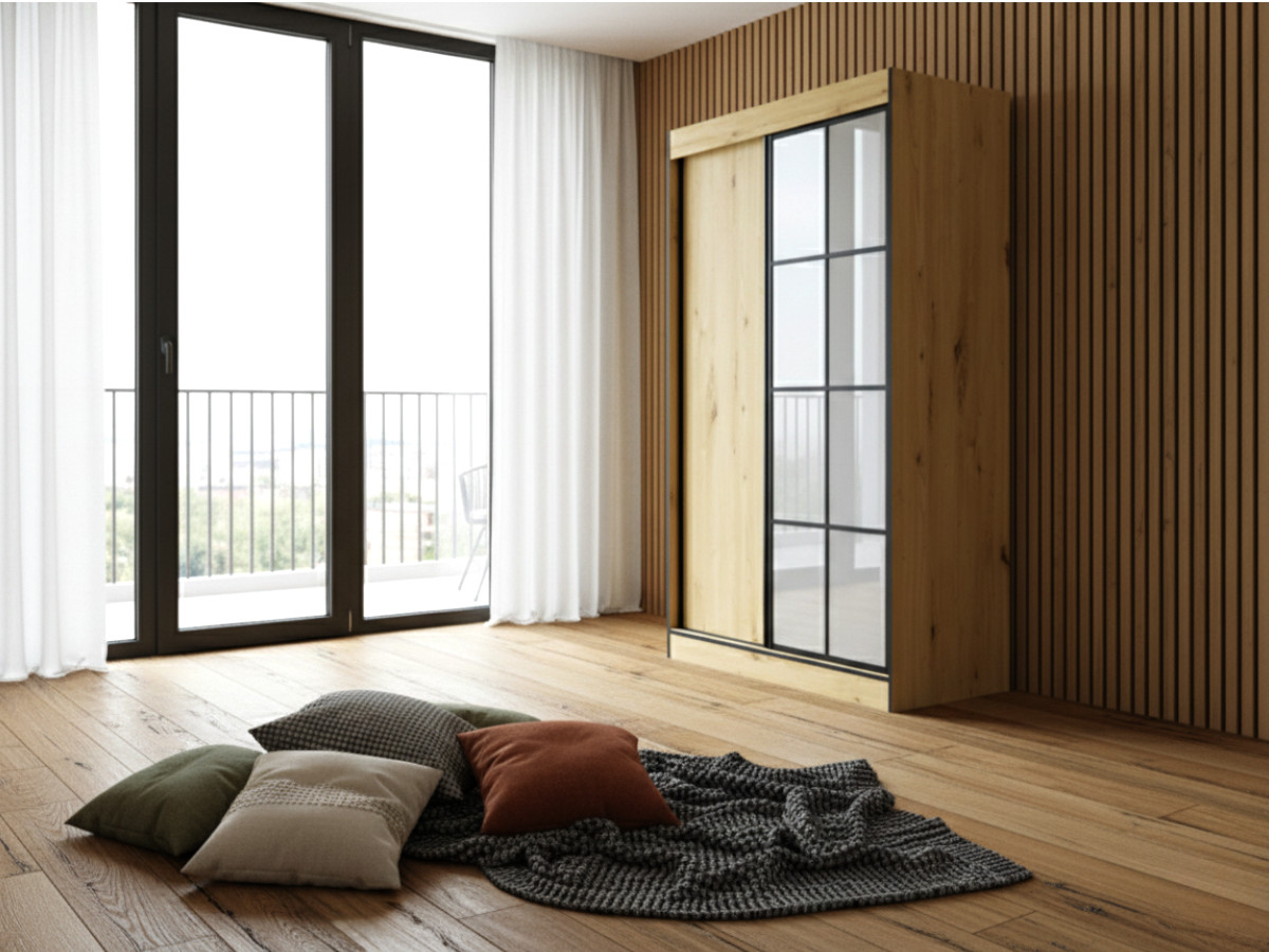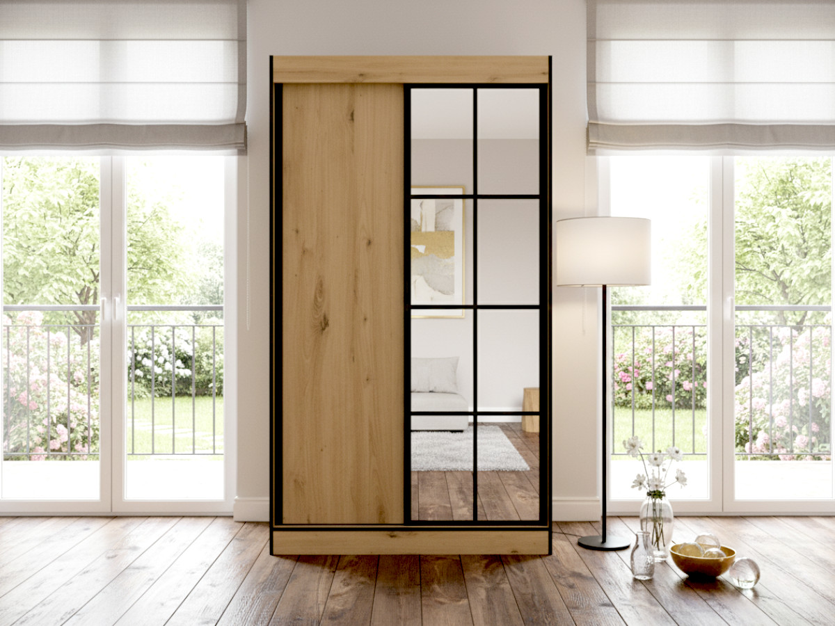SZAFA 2-DRZWIOWA 120 CM MILTON 2 – LUSTRO Z OZDOBNYMI SZPROSAMI LOFT – KOLOR DĄB ARTISAN