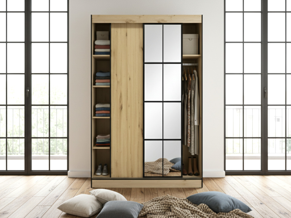 Szafa 2-Drzwiowa 120 cm Milton 2 Dąb Artisan Garderoba Przesuwna Z Lustrem Loft