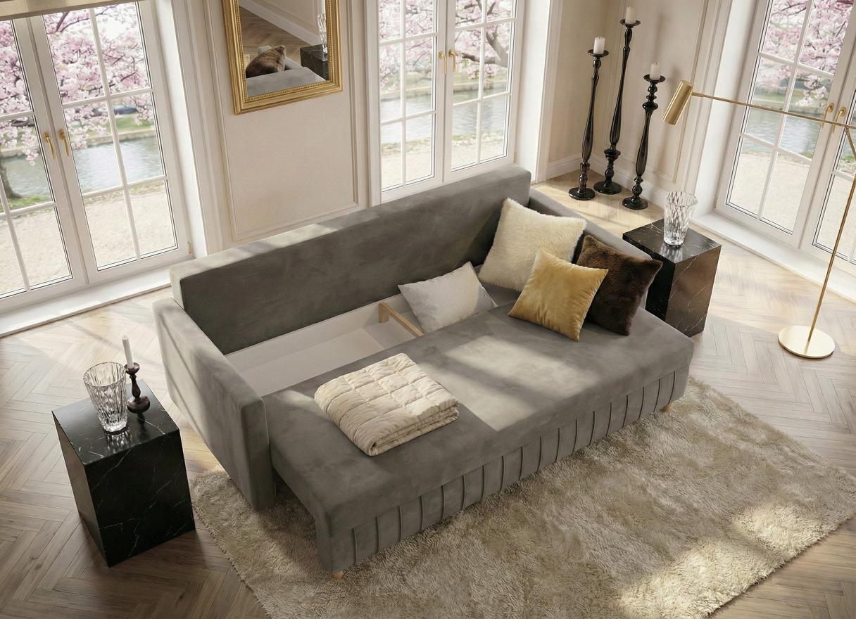 Kanapa Rozkładana 224 CM FLORIDA Z Pojemnikiem Na Pościel - Sofa Pikowana